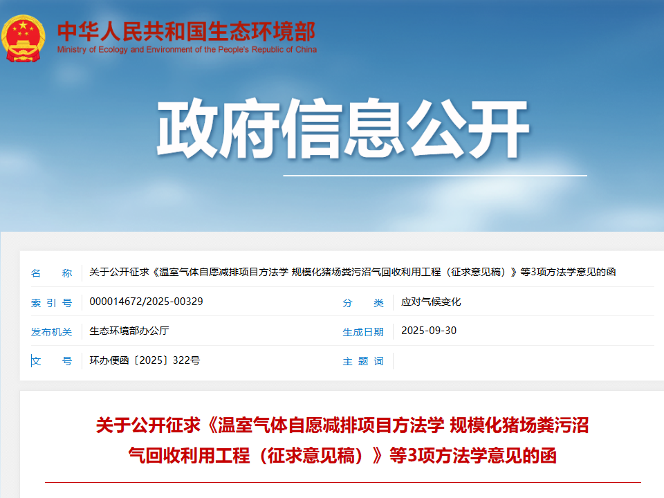近日,由北京科吉環(huán)境技術(shù)發(fā)展有限公司(以下簡(jiǎn)稱(chēng)“科吉”)參編的規(guī)?;i場(chǎng)糞污沼氣回收利用工程CCER方法學(xué)正式進(jìn)入征求意見(jiàn)階段,這是生態(tài)環(huán)境部發(fā)布的第四批溫室氣體自愿減排項(xiàng)目方法學(xué)。為構(gòu)建完善全國(guó)溫室氣體...