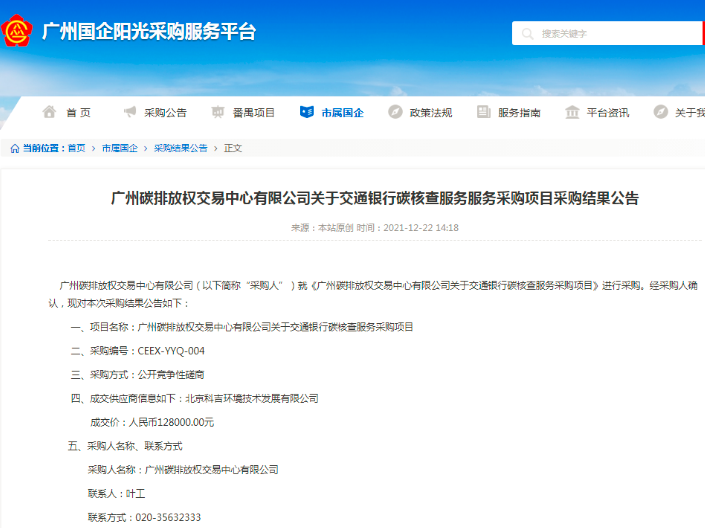 2021年12月22日,我司成功中標(biāo)廣州碳排放權(quán)交易中心有限公司關(guān)于交通銀行碳核查服務(wù)項(xiàng)目。后續(xù),我司將集中技術(shù)力量,為廣東省內(nèi)交通銀行十六家分行營(yíng)業(yè)部或支行在2021年11月1日至2023年12月31日運(yùn)營(yíng)期間已產(chǎn)生及預(yù)...