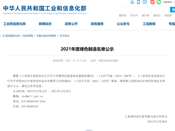 2021年5月28日,國(guó)家工業(yè)和信息化部發(fā)布了《工業(yè)和信息化部辦公廳關(guān)于開(kāi)展2021年度綠色制造名單推薦工作的通知》工信廳節(jié)函〔2021〕130號(hào)。通知發(fā)布后,北京科吉作為綠色制造體系建設(shè)第三方評(píng)價(jià)機(jī)構(gòu)和連續(xù)三年中標(biāo)工...