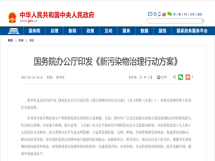 新華社北京5月24日電 國務院辦公廳日前印發(fā)《新污染物治理行動方案》(以下簡稱《方案》),對新污染物治理工作進行全面部署。有毒有害化學物質(zhì)的生產(chǎn)和使用是新污染物的主要來源。目前,國內(nèi)外廣泛關注的新污染物主...