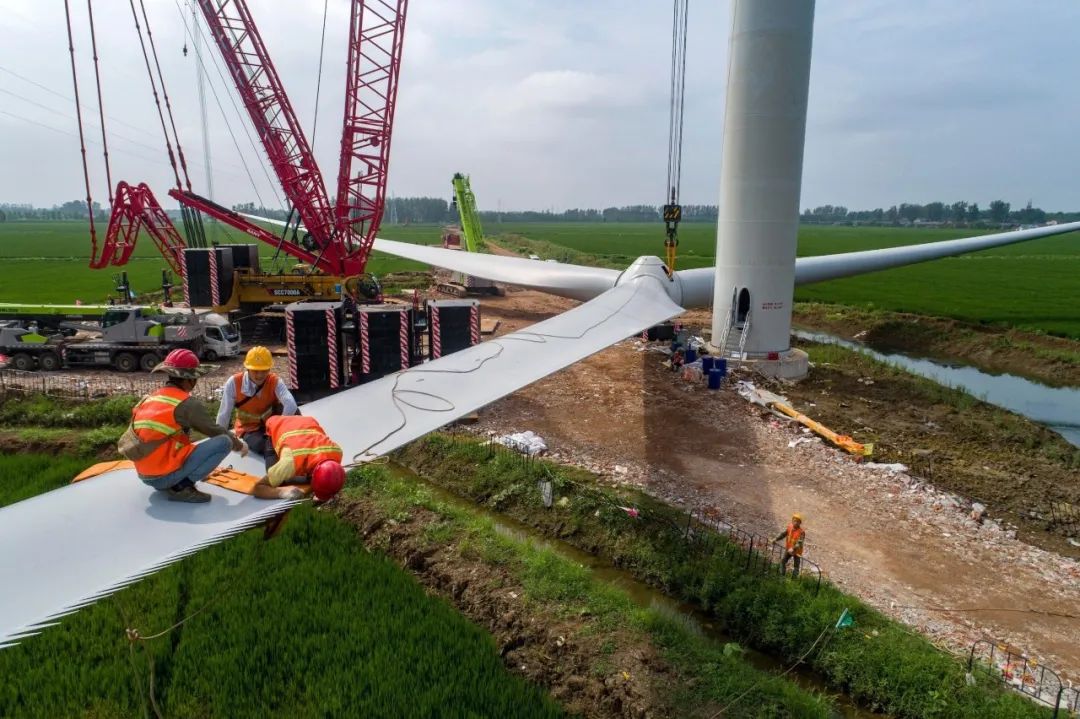 ▲江蘇淮安,技術人員正在組裝風力渦輪機。圖片來源:He Jinghua / Alamy